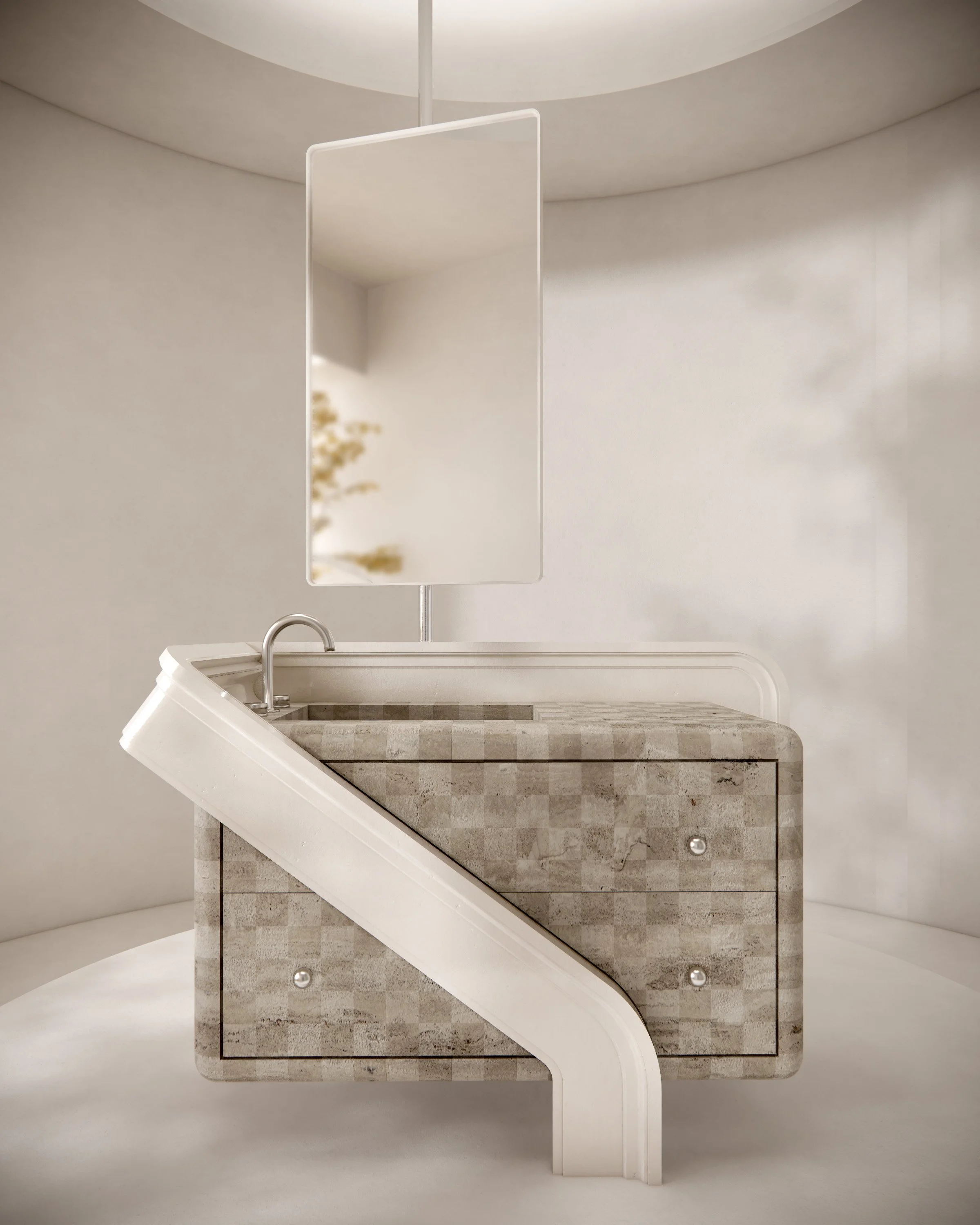 MOULD explores the shapes of traditional crown molding and casing profiles and abstracts them from their conventional 2d planar applications to standalone three-dimensional objects. Sweeping curves and stepped profiles are extruded, bent, and carved to create uniquely crafted pieces that bring the details commonly found at the high points of your ceilings to your fingertips.